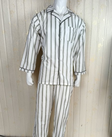 PJS Men’s Two-Piece Pyjama White and Gray Straps Zara Men’s Night Suit