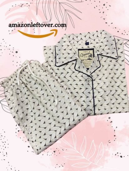 Pakistan Ali Bhaiya Women White Petals Night Suit. 100% soft cotton comfortable as well as feminine, making it a perfect wear for a relaxed evening at home.