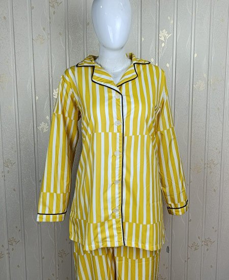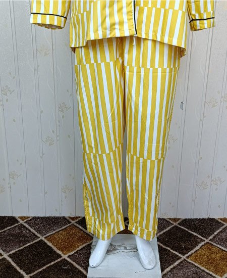Pakistan Ali Bhaiya Zara Ladies Night Suit Yellow Strips PJS women’s Two-Piece Pyjama is 100% soft cotton and comfortable, making it a perfect wear for a relaxed evening at home.